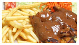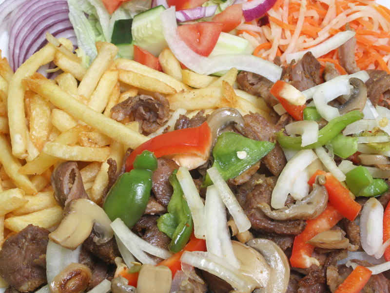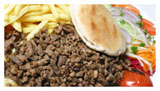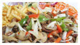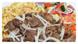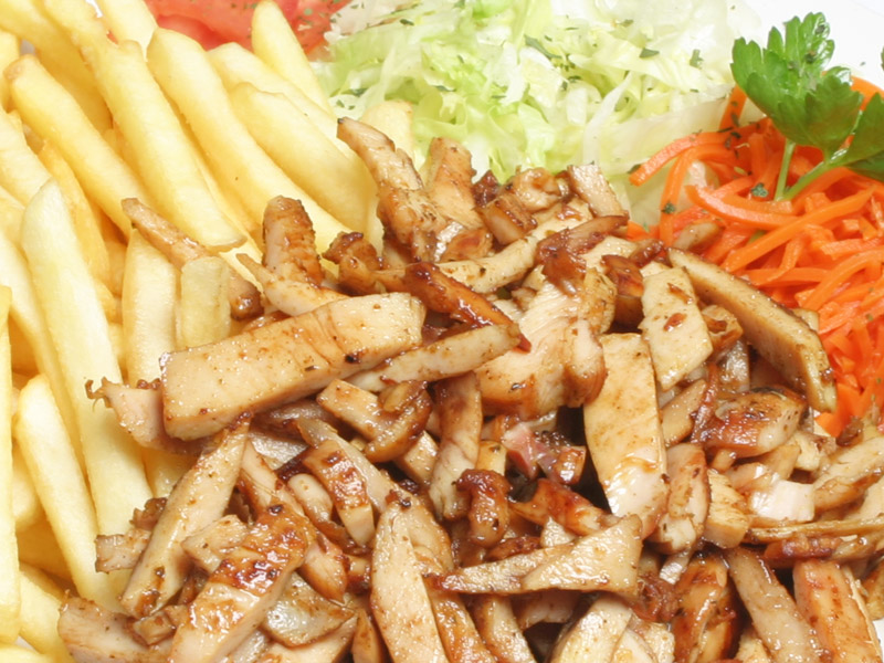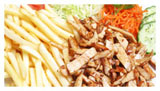 Shotels worden geserveerd met friet, groente & pitabroodje.
